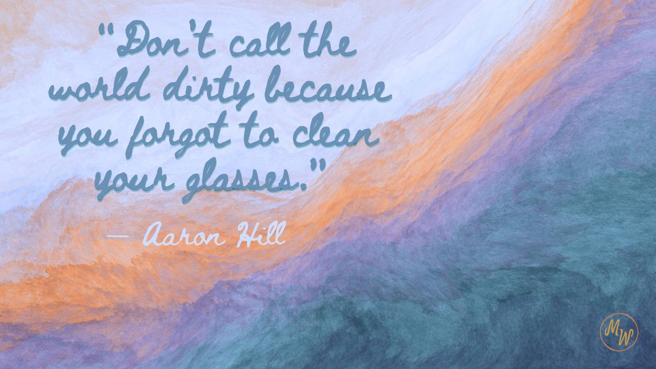 “Don’t call the world dirty because you forgot to clean your glasses.” — Aaron Hill