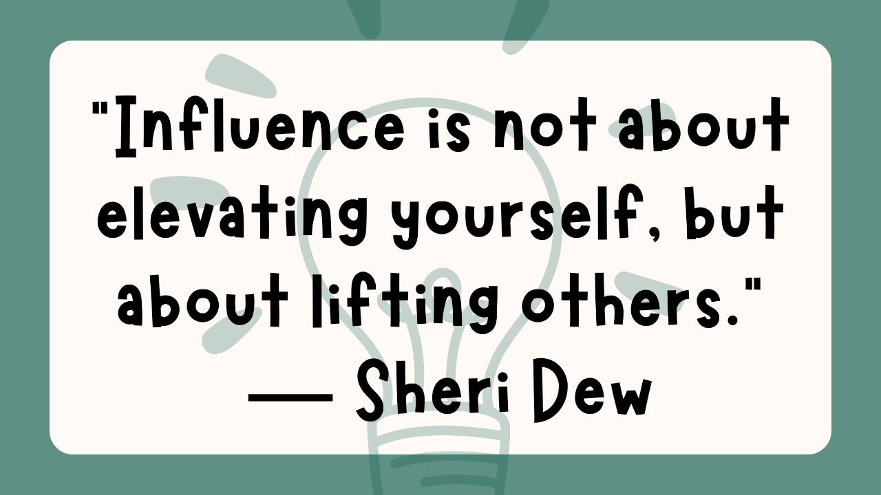 “Influence is not about elevating yourself, but about lifting others.” ~ Sheri Dew